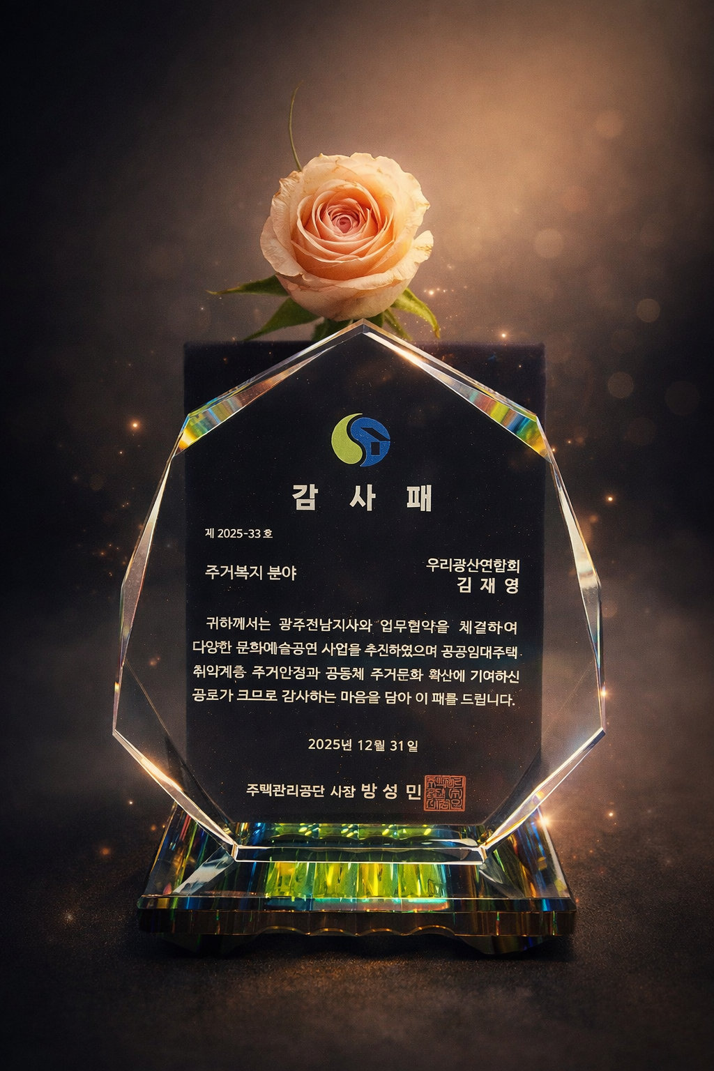 공공임대주택 취약계층의 주거안정과 공동체 주거문화 확산에 기여한 공로를 인정받아 수여되었습니다.